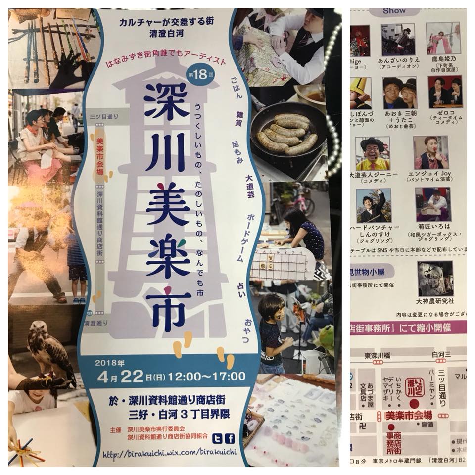 31076448_618076691862035_388560820776206336_n | 清澄白河駅近く#深川資料館通り商店街 主催、深川美楽市、明日4月22日12時〜17時、開催です!