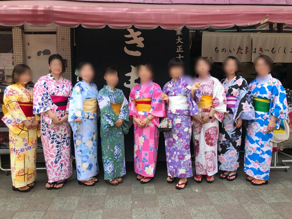 37586664_680976768905360_8288900660640874496_n | 浴衣のレンタルにお越し頂いたグループのお客様。パーソナルカラー(お似合いになる色)に合わせたコーディネートです。